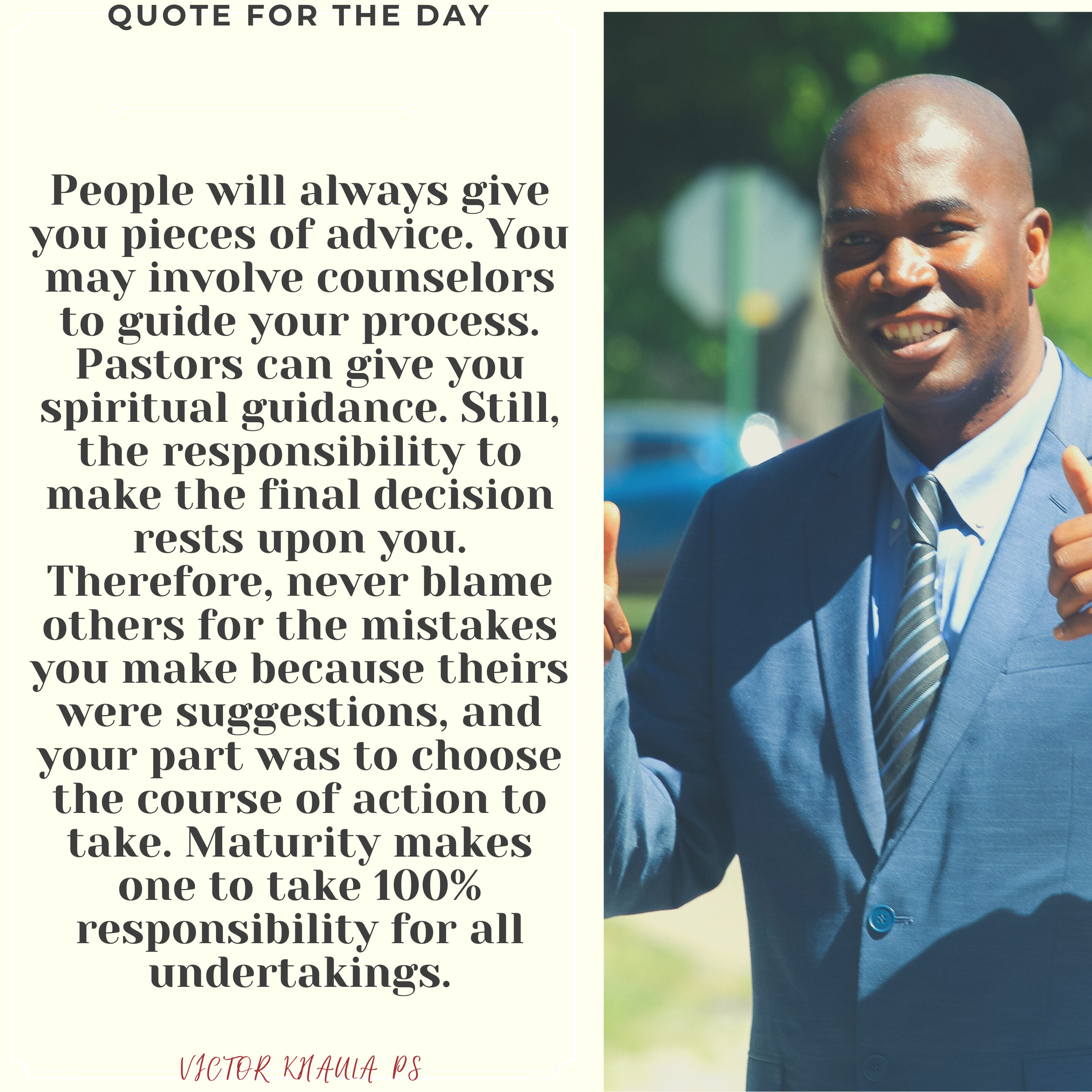 Today’s quote reminds us to stop blaming others for giving us advices or guidance that never worked out well at the end.