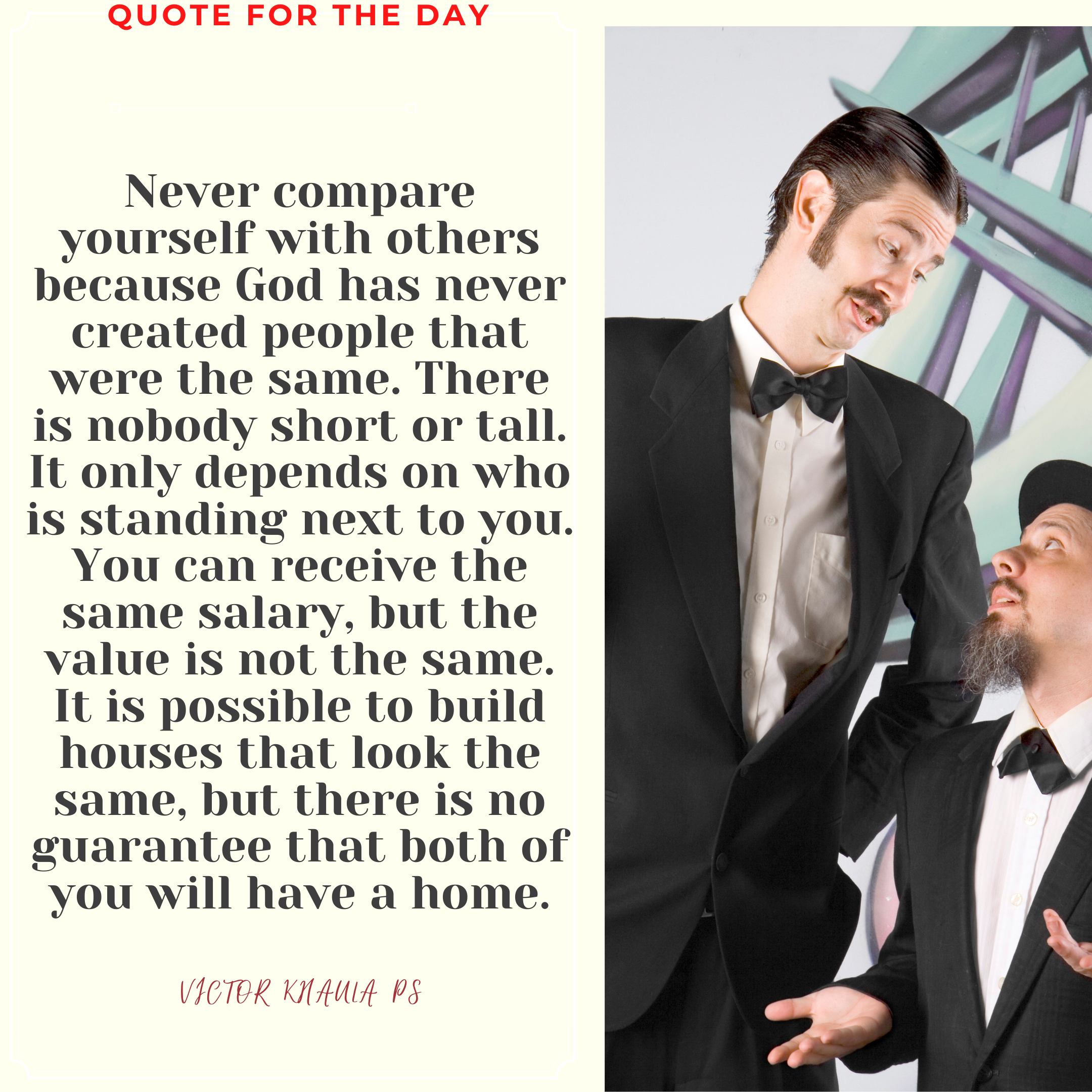 Today’s quote reminds us never to compare ourselves with others because each one of us is unique in God’s eyes.