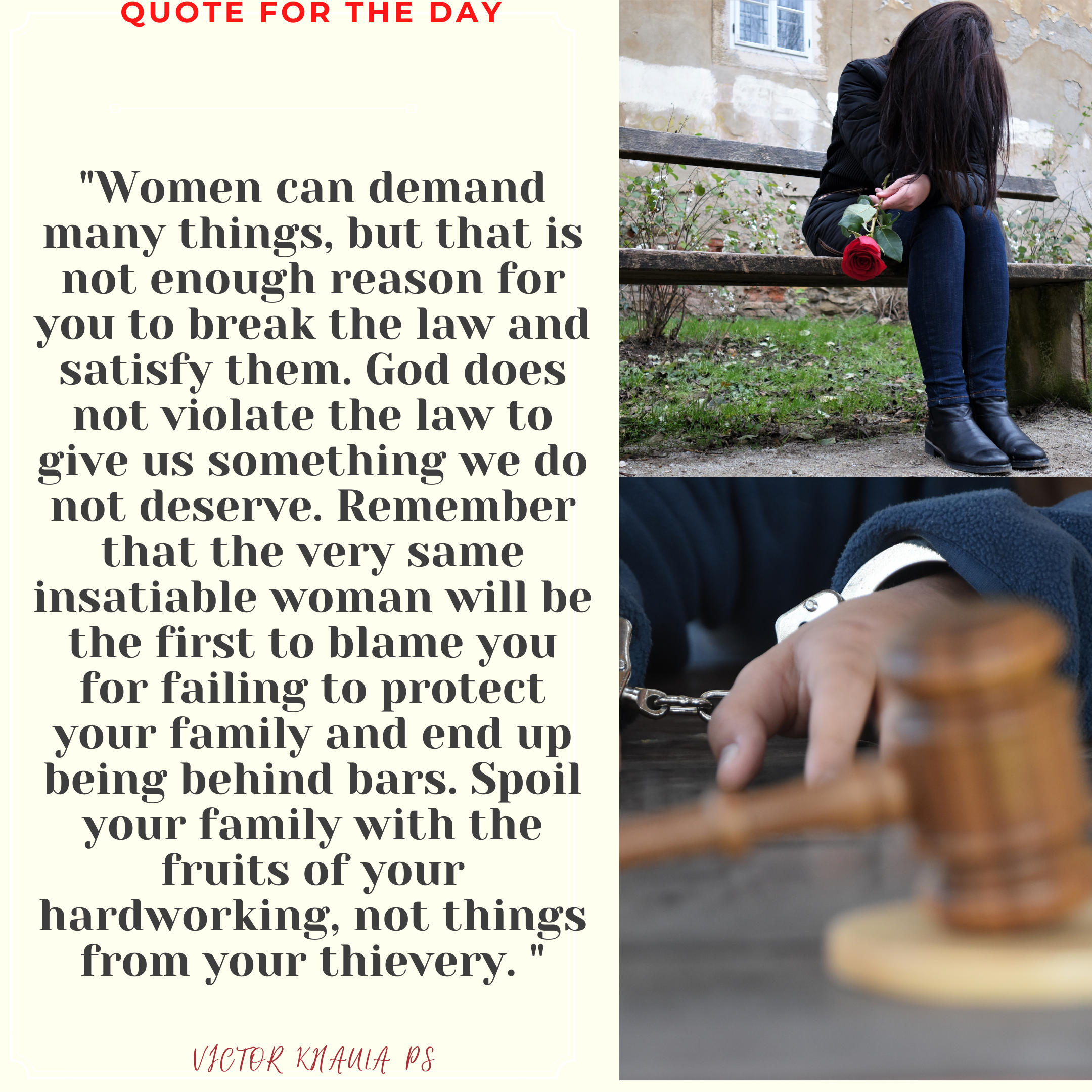 Today’s quote reminds us that true love does not require us to break the law so that we get our loved one’s things they demand.
