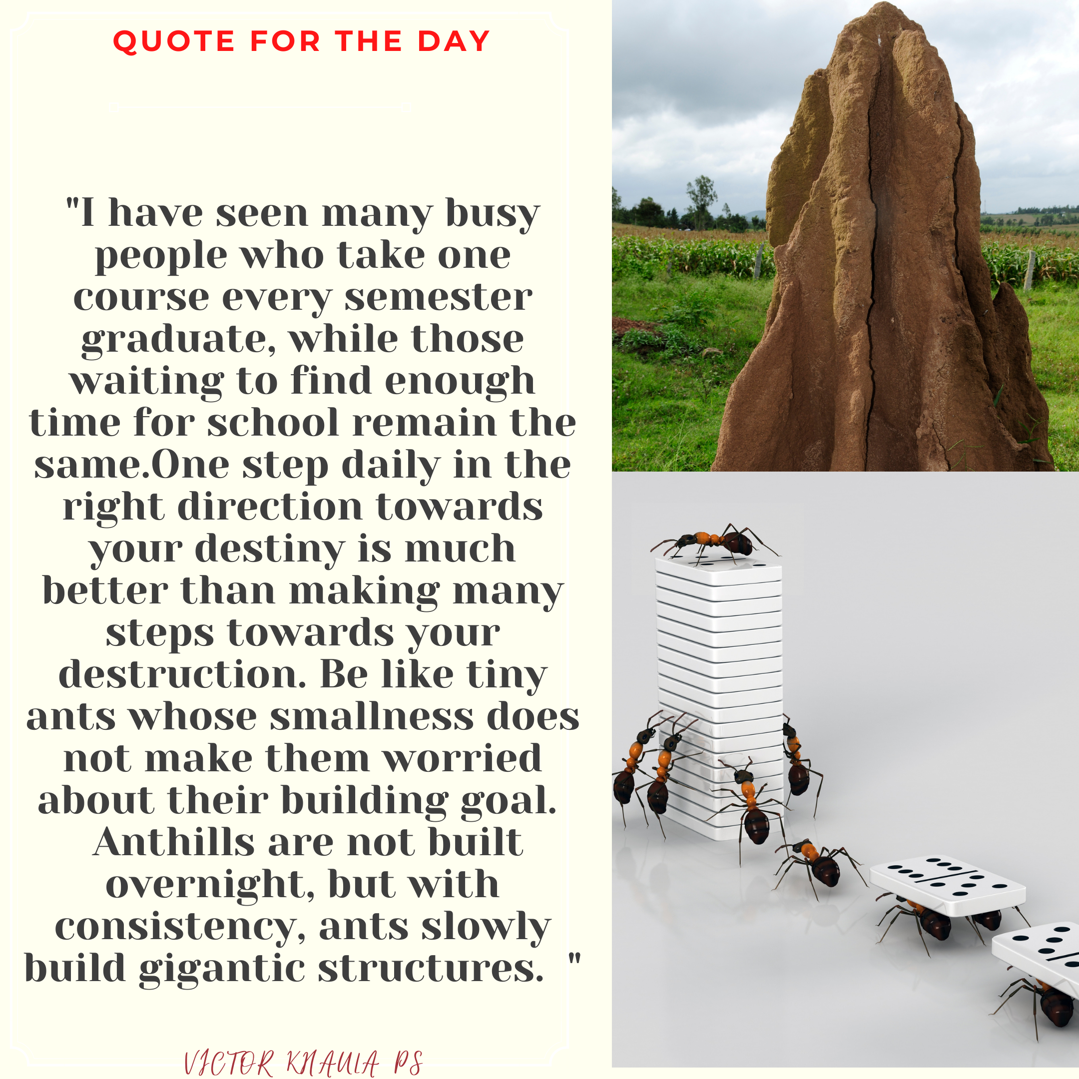 Today’s quote aims at encouraging the youth never to undermine the power of consistency in following their goals.