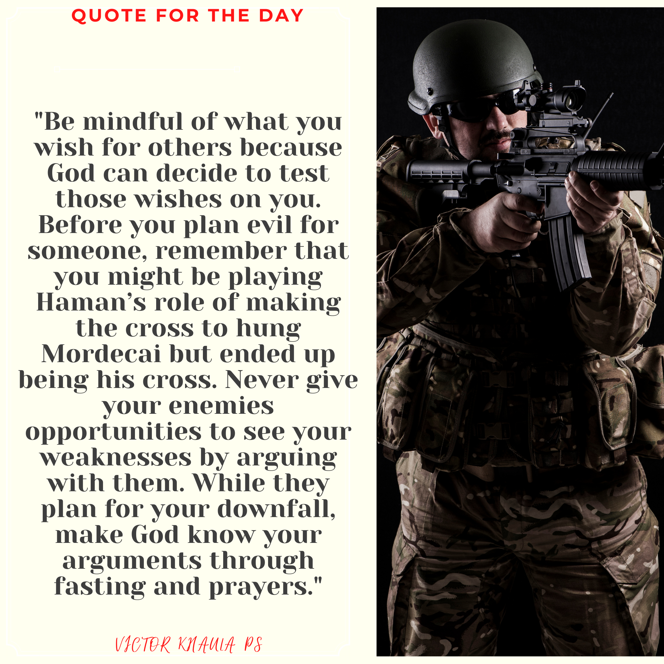 Today’s quote warns us never to wish others evil because we might be the victims of the very same evil wishes we had for others.