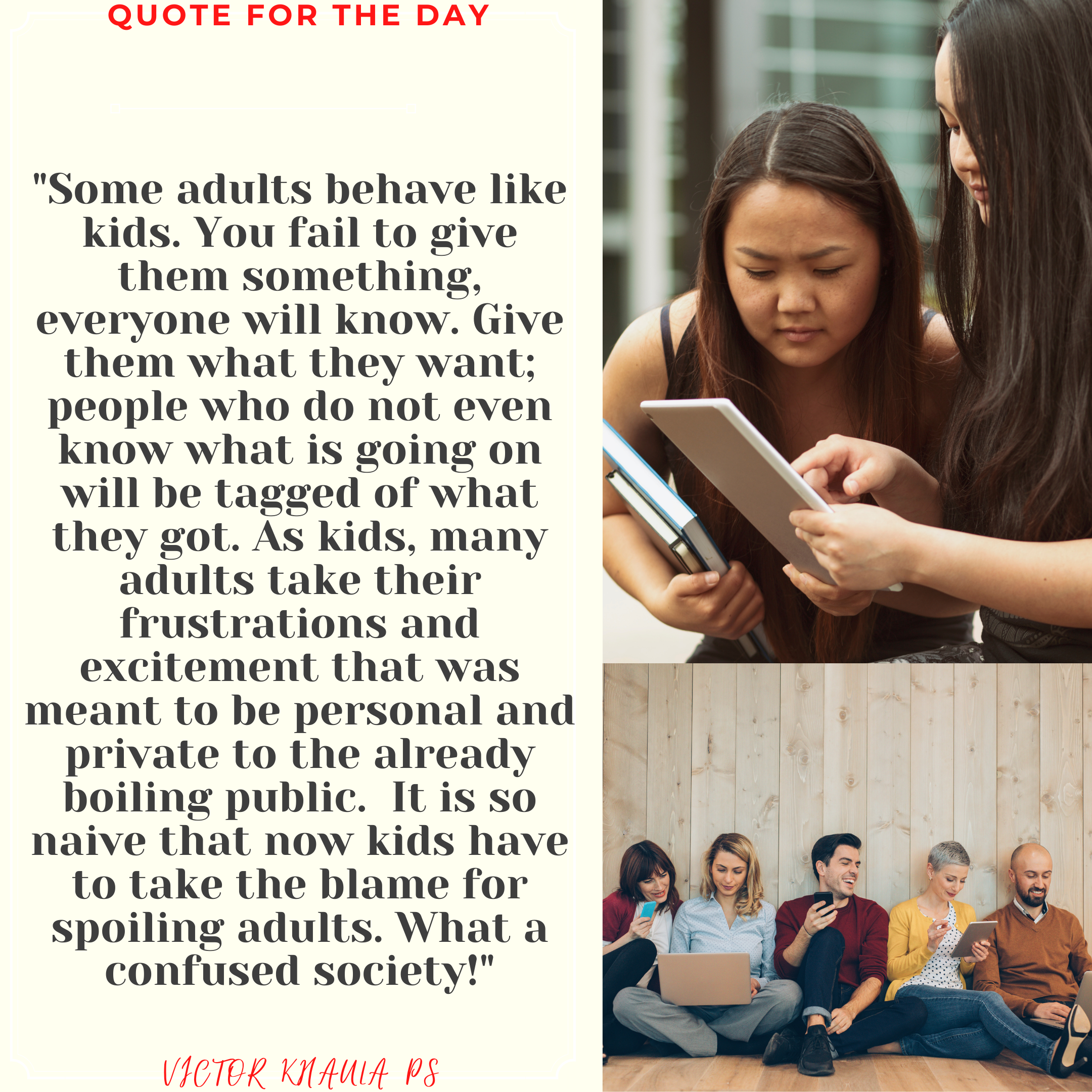 Today’s quote presents the negative role reversal of adults who portray some behaviors befitting kids in this technological era.