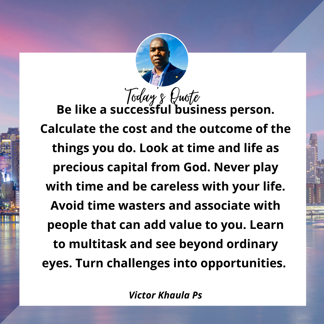 Today’s quote motivates us to think and act like a business person because that is the only way to succeed in everything we do.