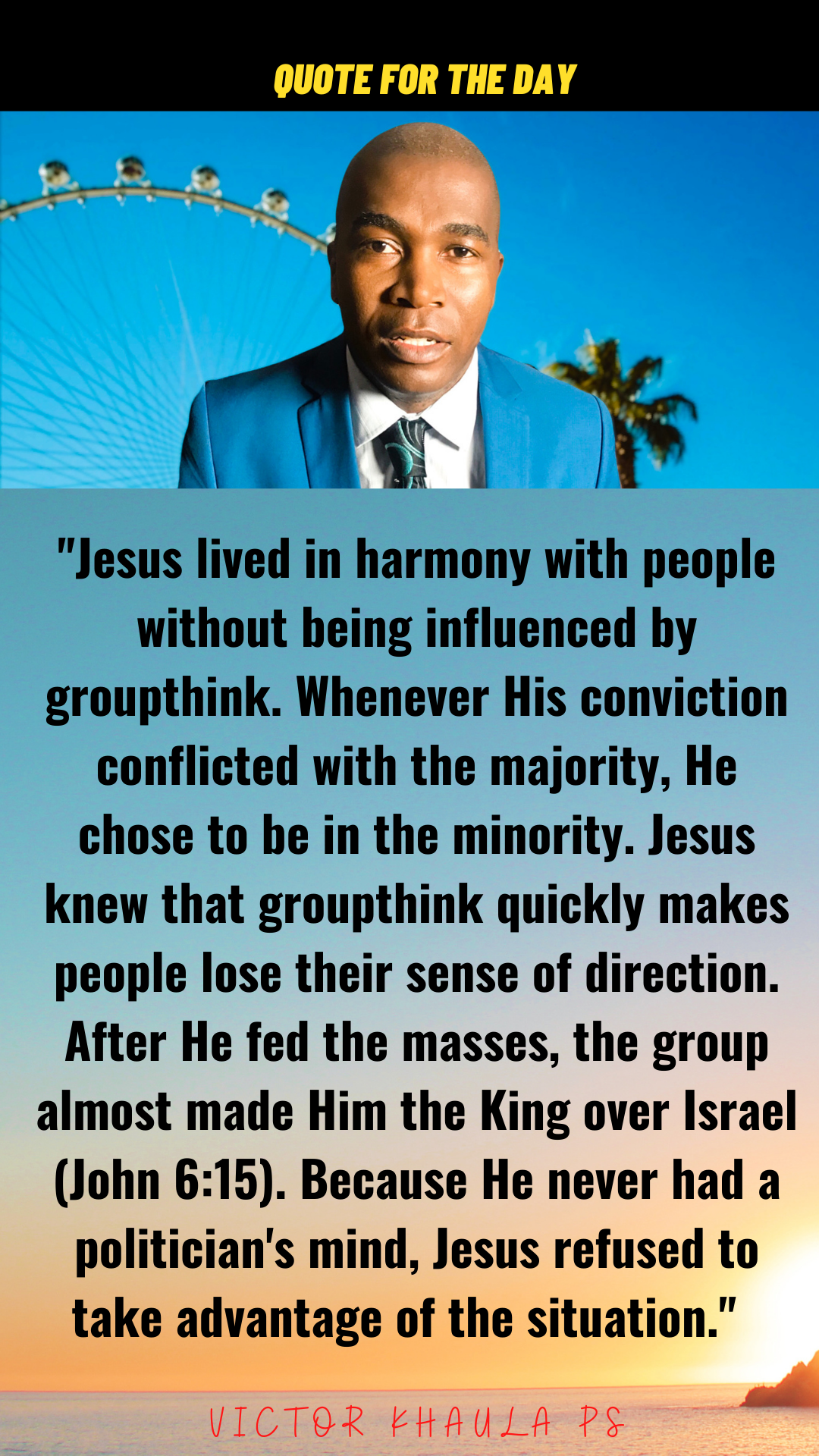 Today’s quote highlights Jesus’ example that He lived in harmony with people without compromising His goals and values.