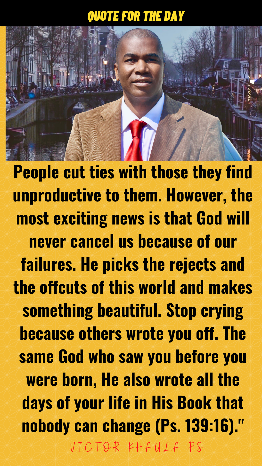 Today’s quote highlights the uniqueness of God for not severing His relationship with us when the world finds us unproductive.