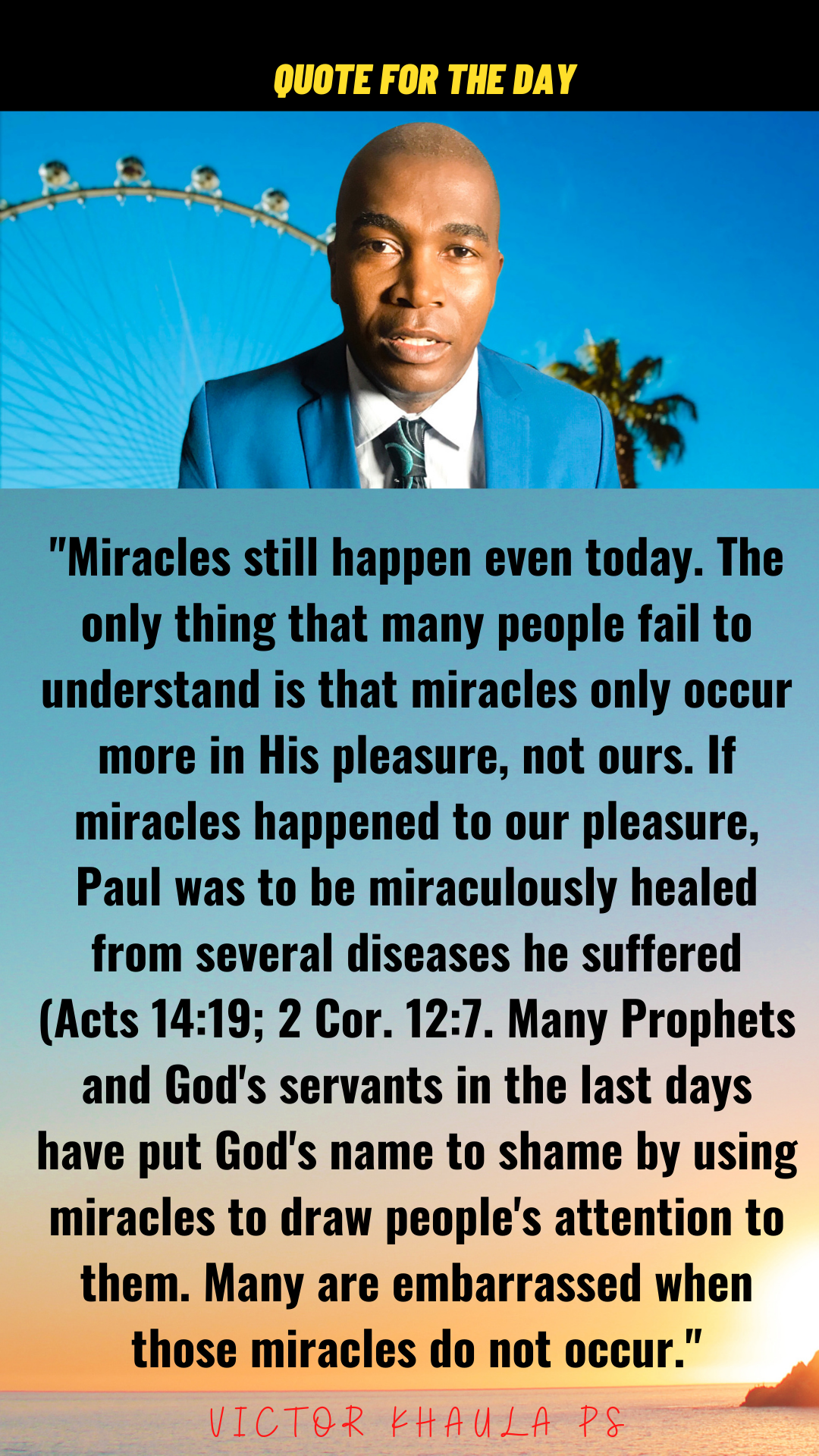 Today’s quote reminds Christians that miracles are still happening, only that we may not see them sometimes because of our selfish motives.