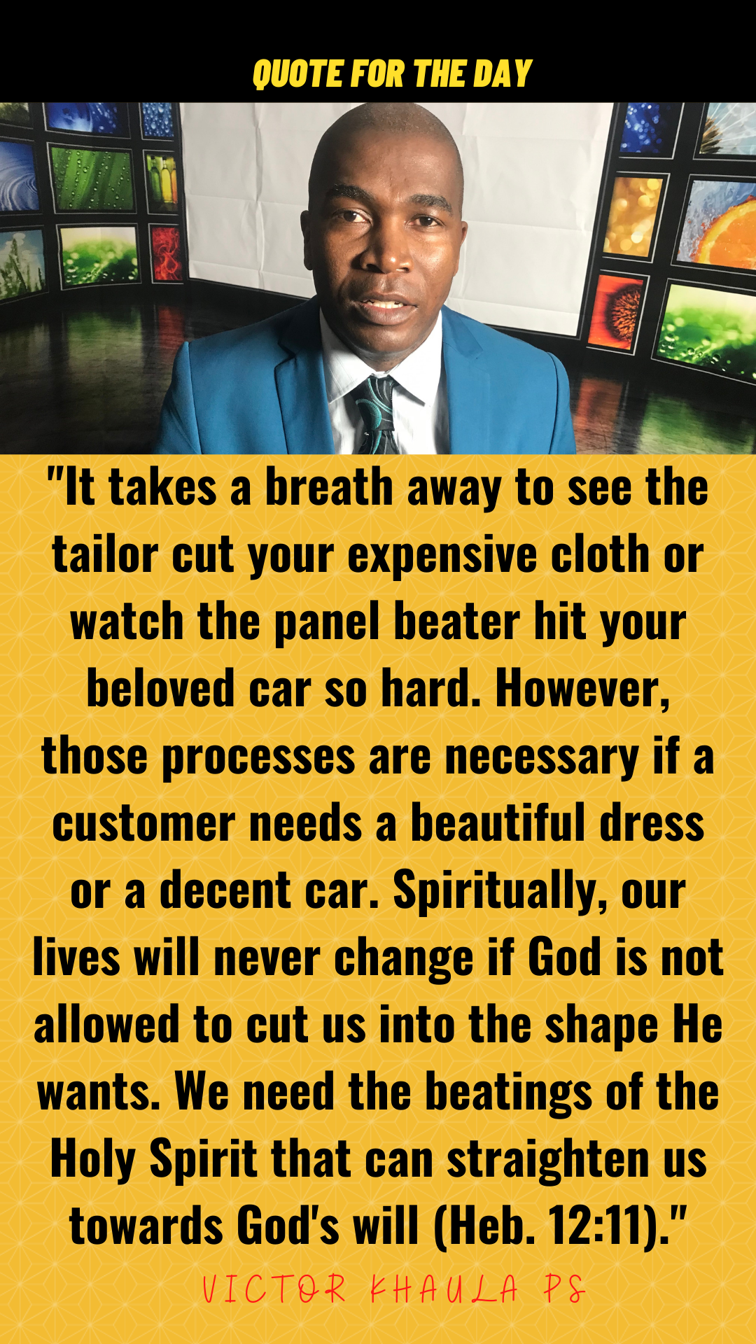 Today’s quote motivates us to give God a chance of perfecting us, like how we allow tailors or panel beaters to work on our clothes or cars.