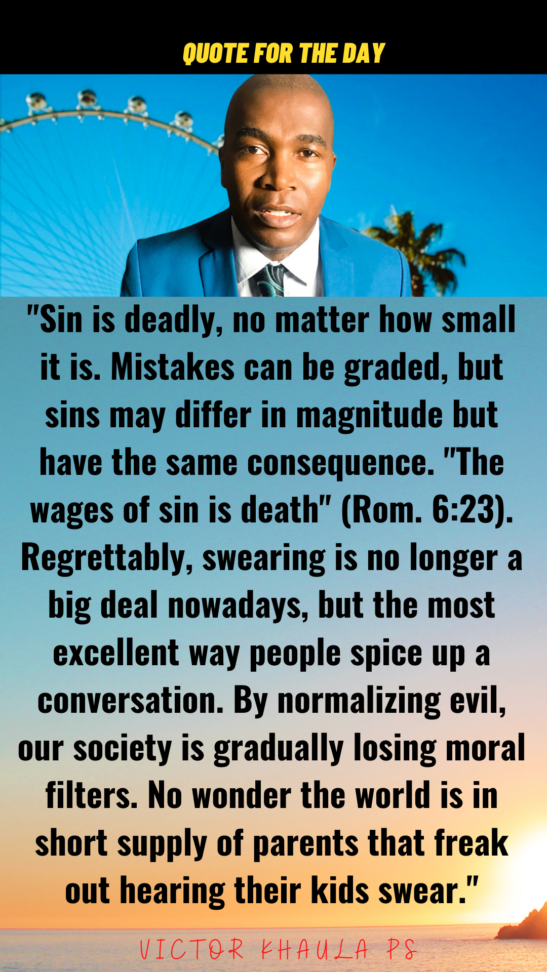 Today’s quote warns society of how some sins are being normalized by looking at them as small and how such behavior causes the loss of moral filters.