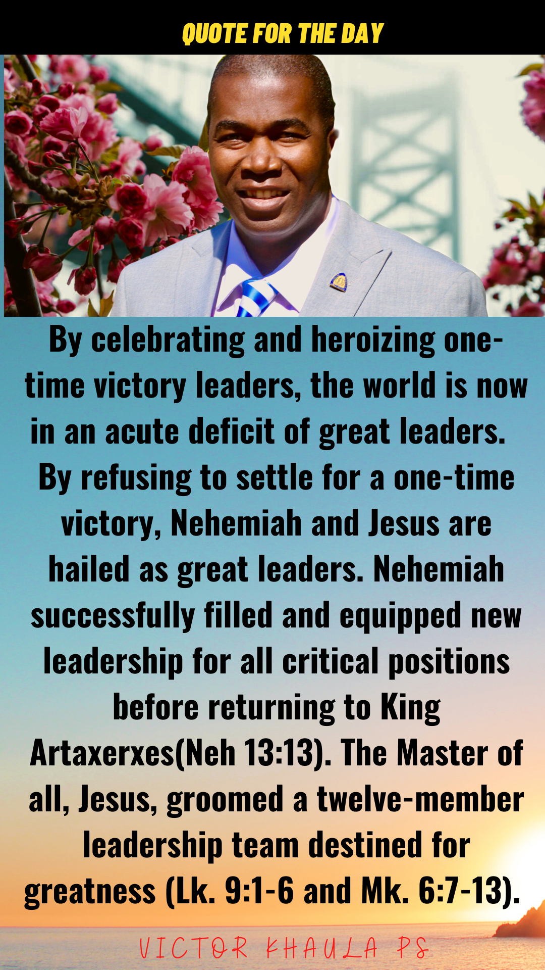 Today’s quote shows how our mistake in celebrating the one-time victory leaders has lessened the interest in preparing for new leadership that could deliver.