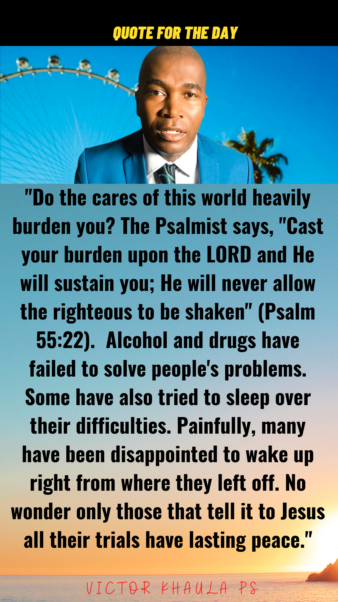 Today’s quote motivates us to cast our burdens on Jesus because that is the only way to give us genuine peace.