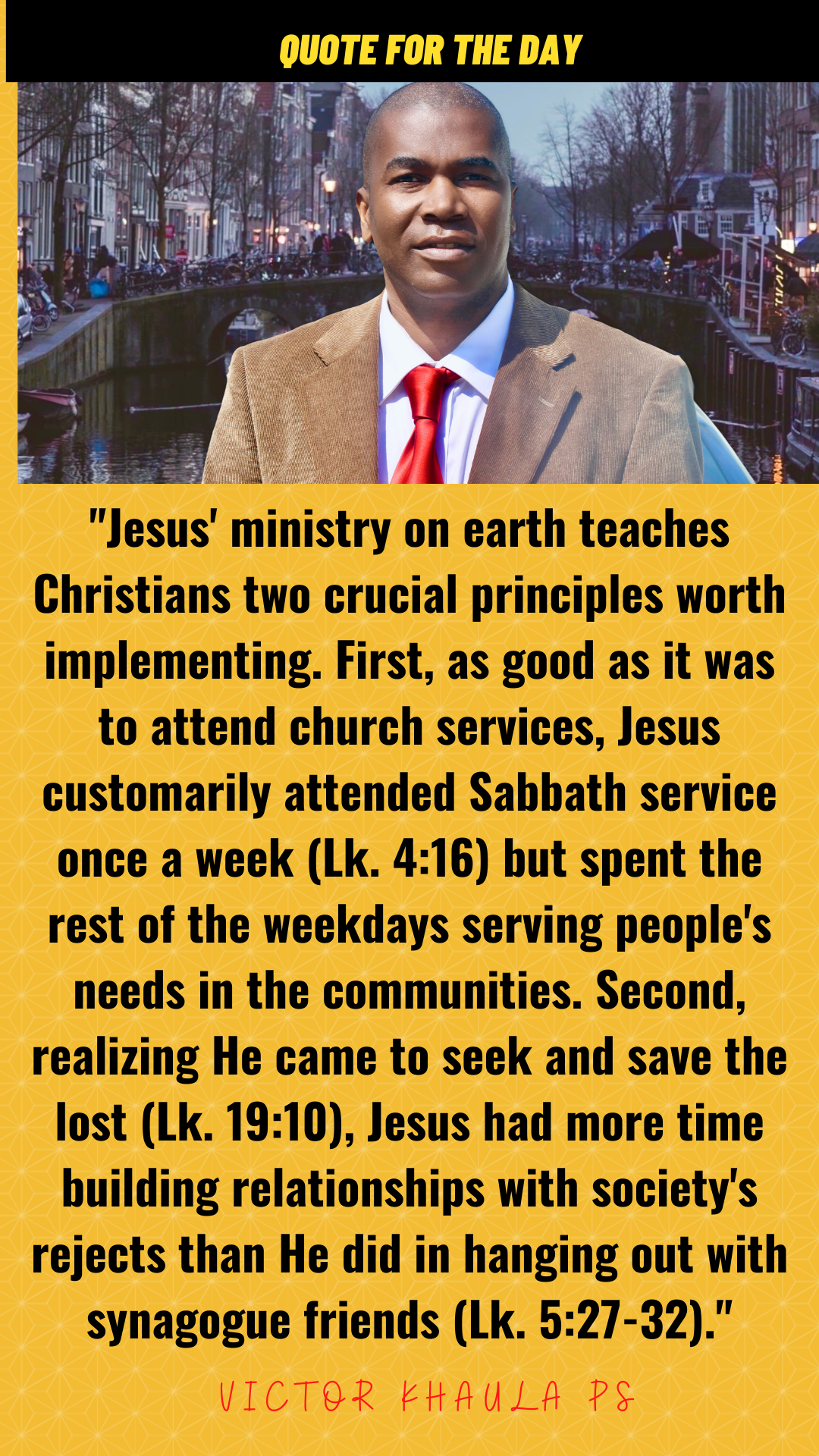 Today’s quote motivates Christians to follow Jesus’ example, who never prioritized worship service at the expense of serving the community as Pharisees did.