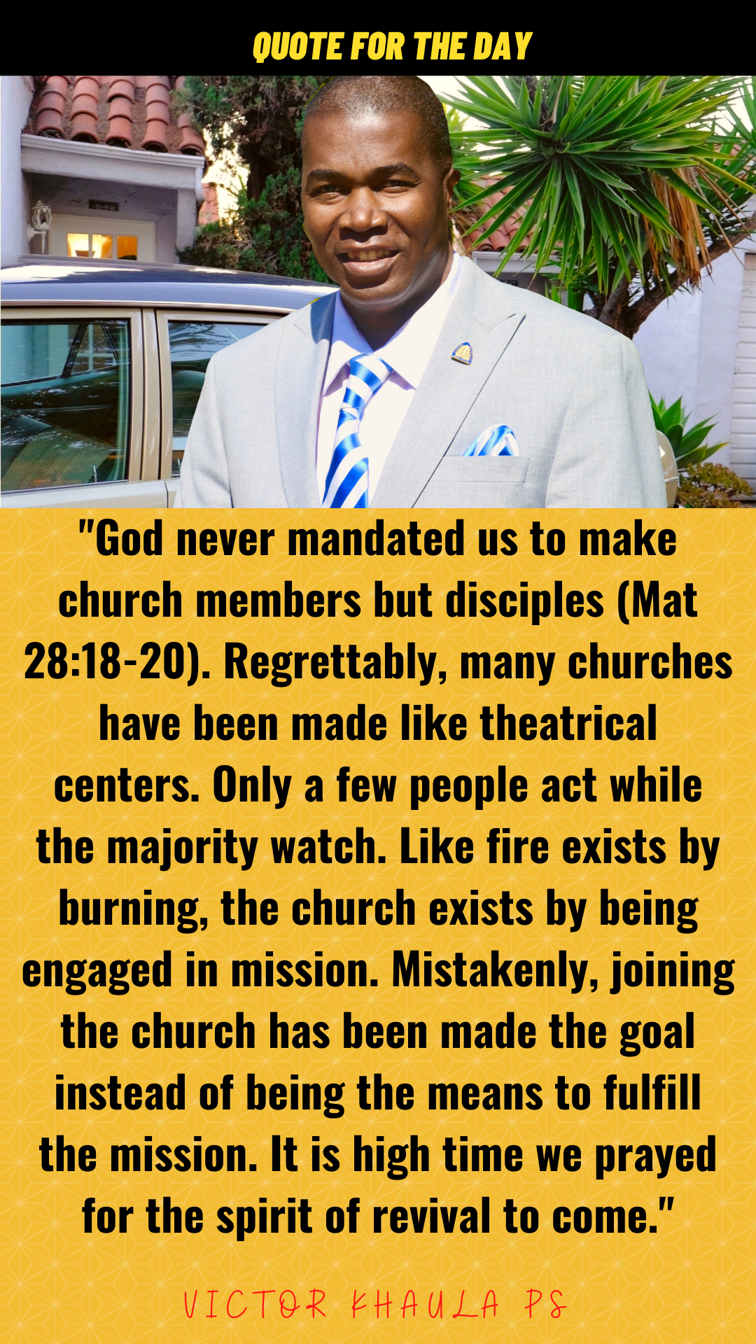 Today’s quote reminds the Christian church of its mandate to make disciples, not members that are not engaged in God’s mission.