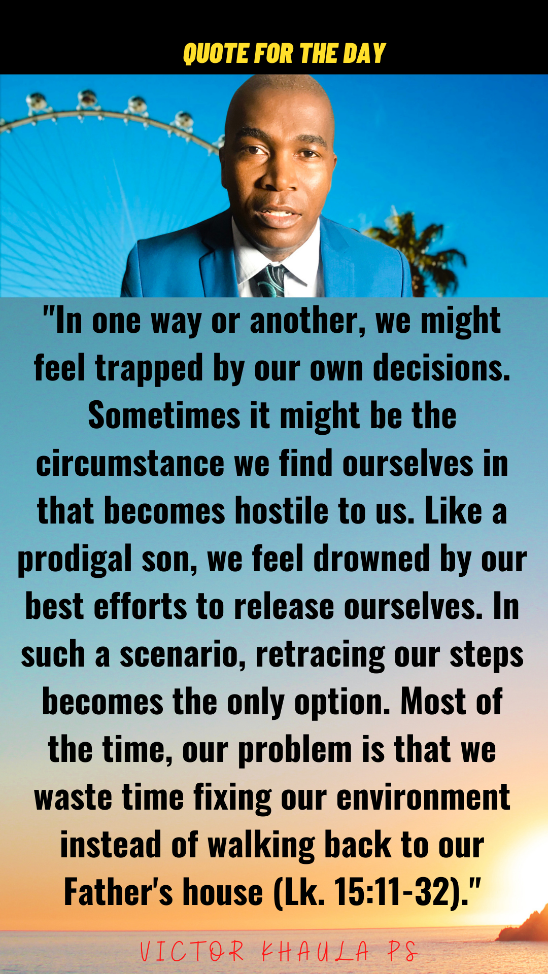 Today’s quote reminds us that retracing our steps back to the Father’s house is the most efficient way to get ourselves out of trouble.
