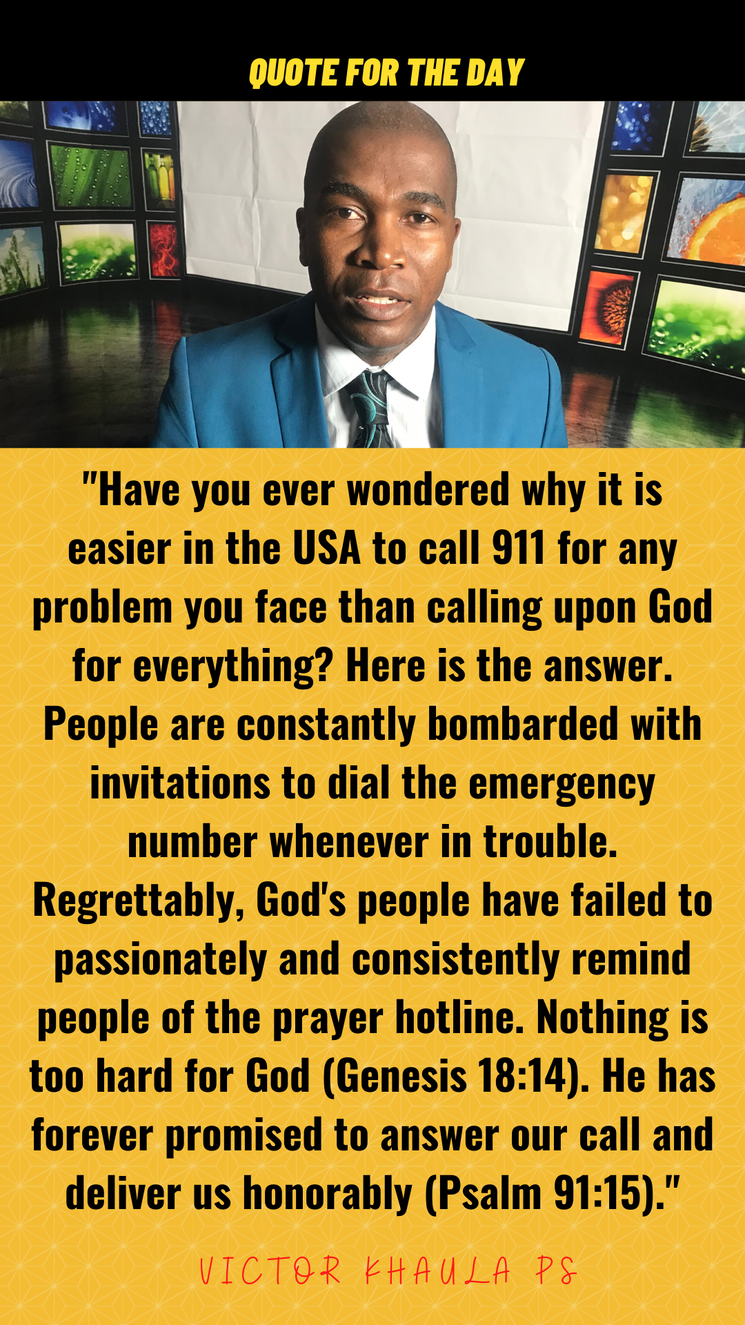Today’s quote is a wake-up call for Christians to passionately and consistently share with everyone the prayer hotline as the most reliable number to call whenever in trouble.