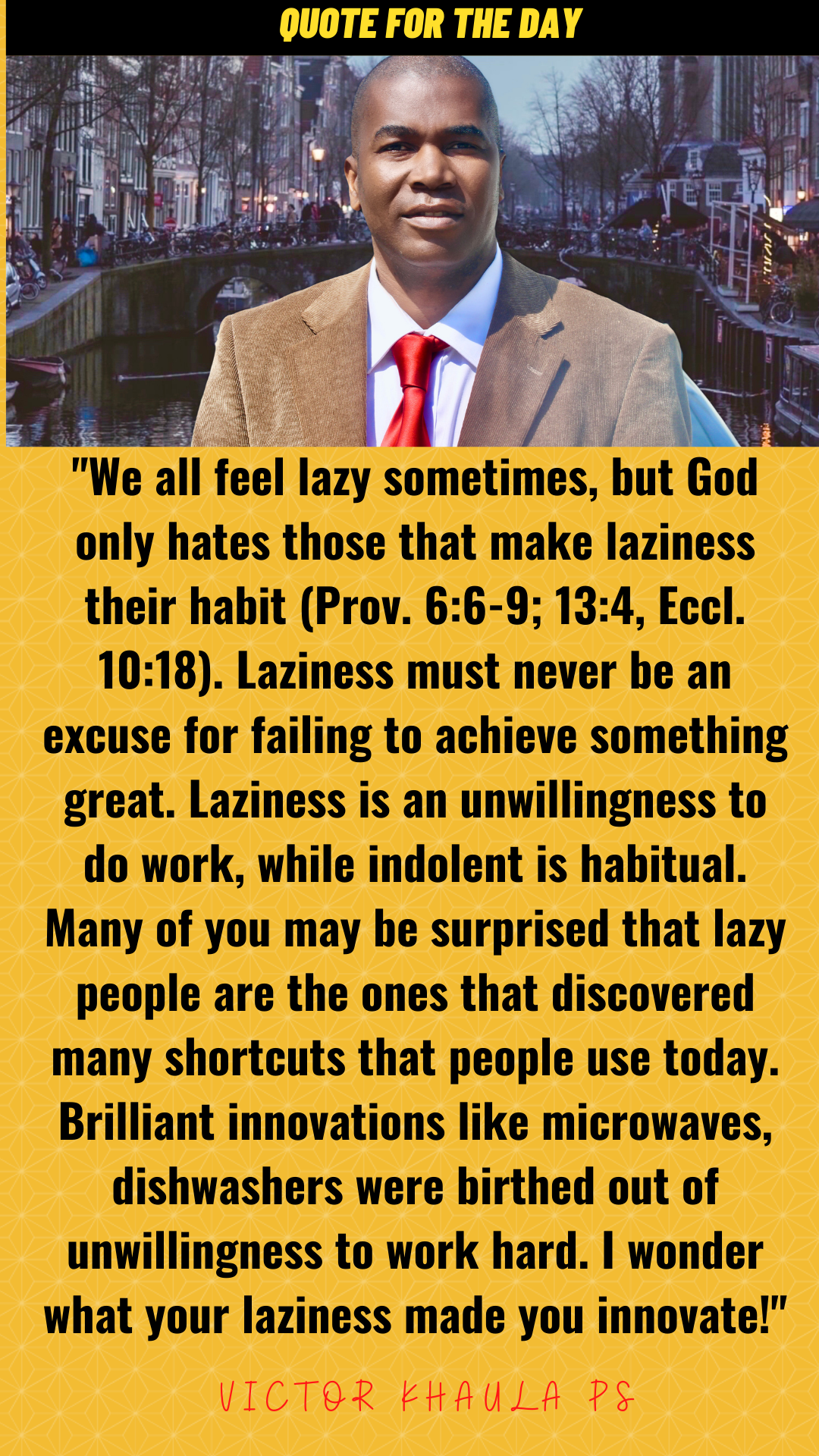 Today’s quote reminds us that God hates habitual laziness because it kills creativity and innovations in people.