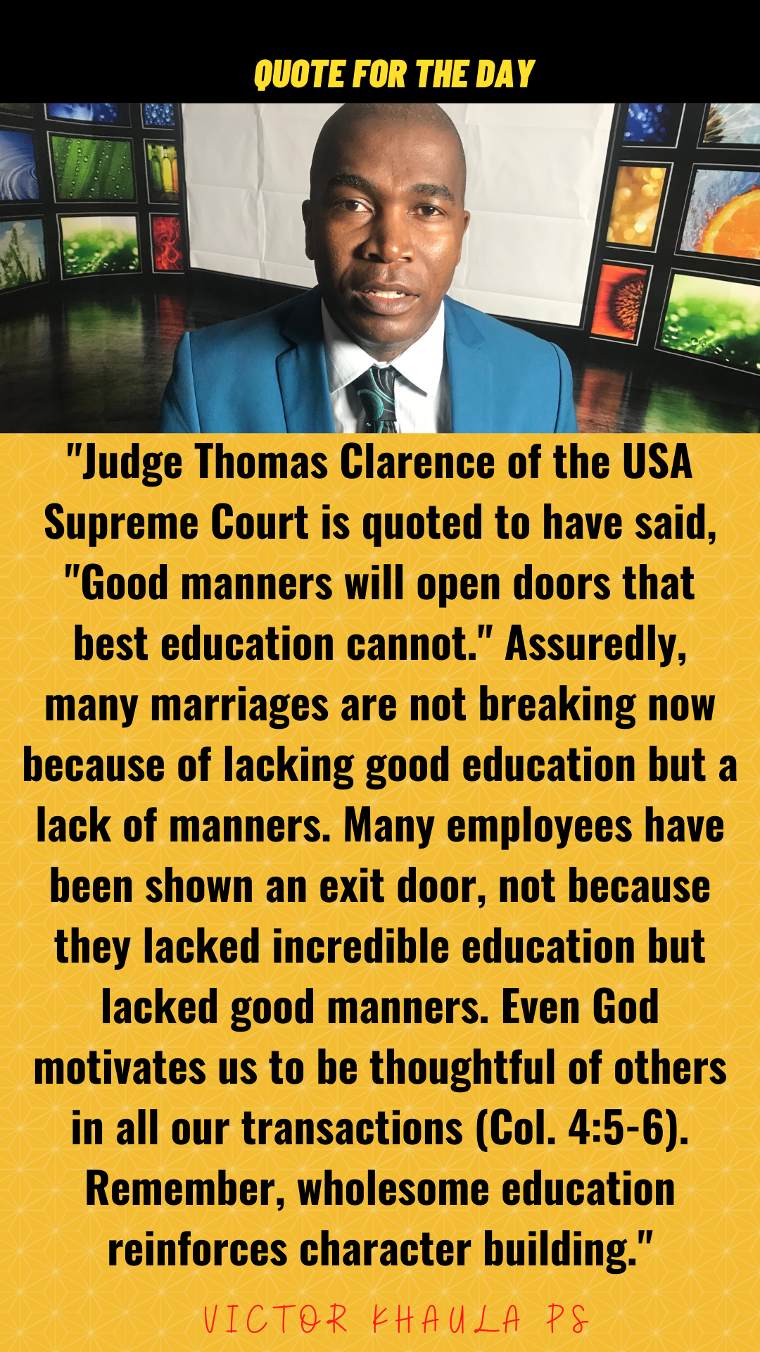 Today’s quote motivates us to balance our education with having good manners because failure to do so makes our qualifications worthless.