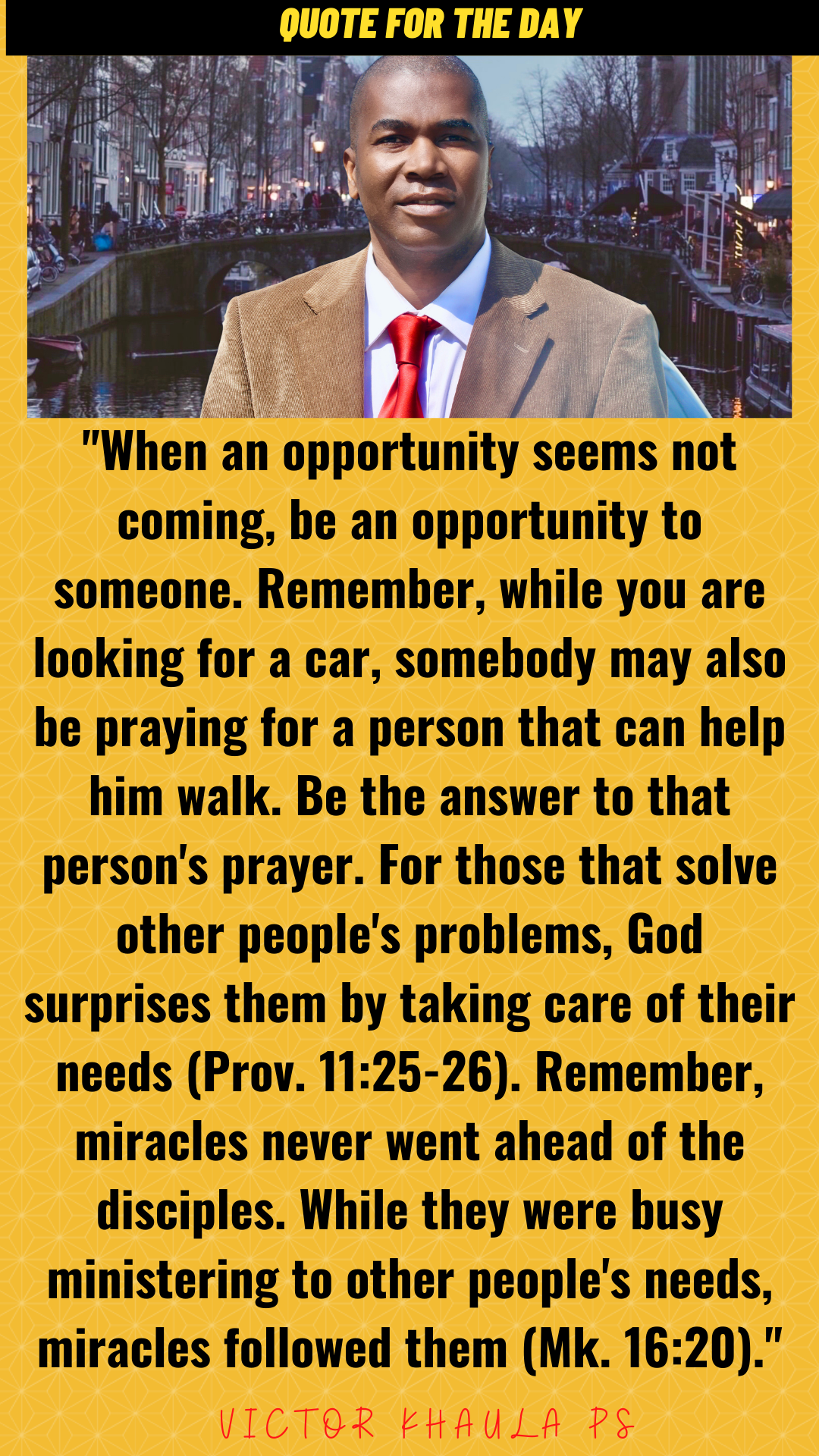 Today’s quote reminds us that becoming an opportunity to someone is the best way to wait for God’s opportunities.