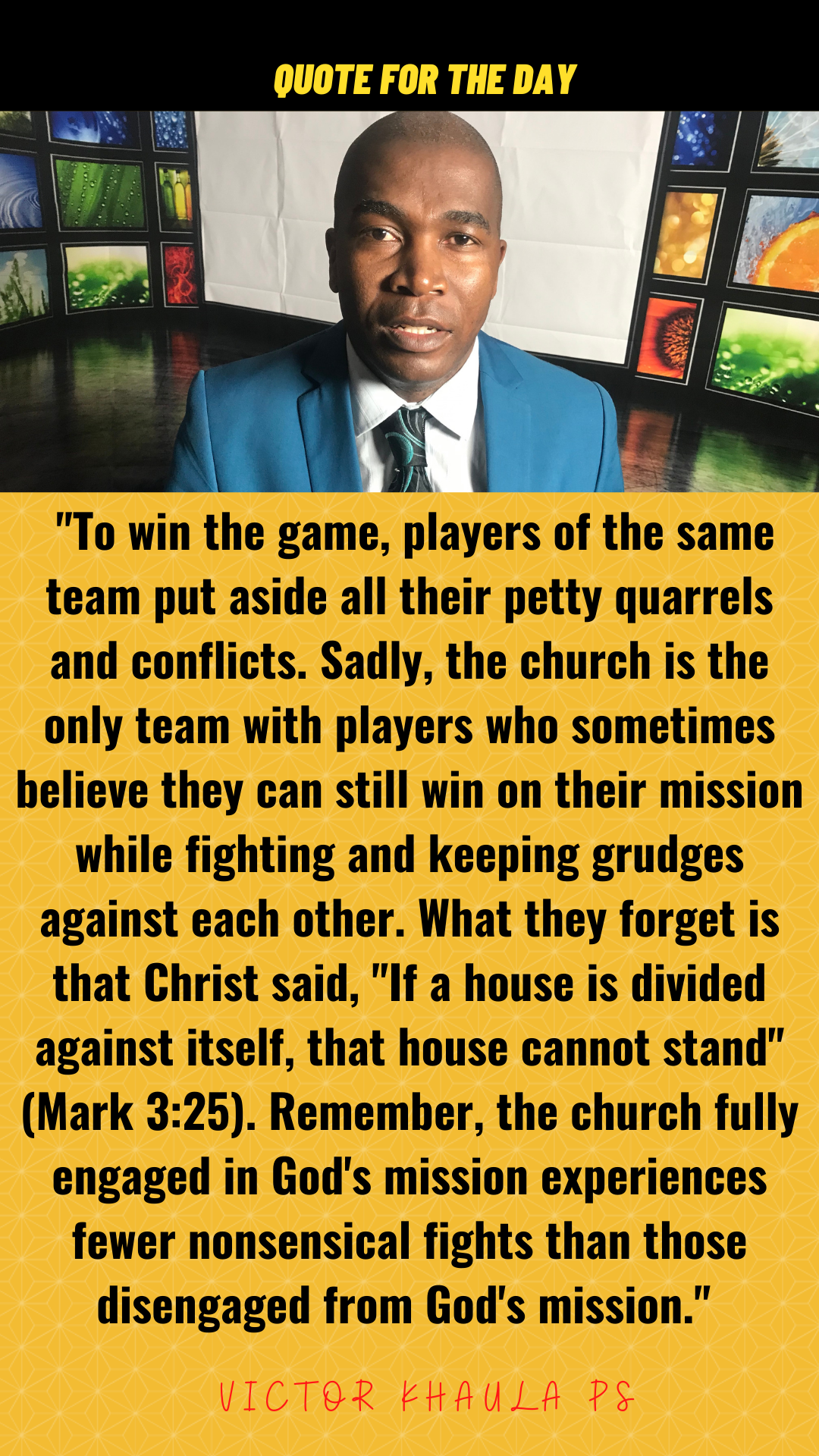 Today’s quote reminds churches that church conflicts can only be put aside if every member is fired up for God’s mission.
