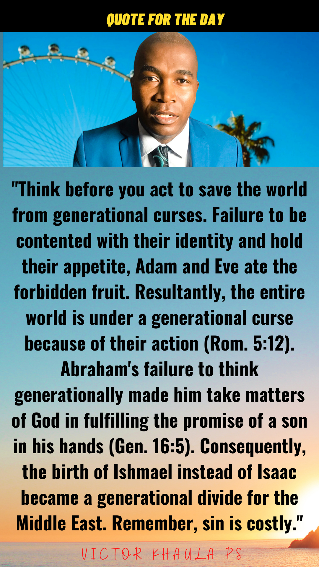 Today’s quote motivates us to think generationally to avoid committing sins that have long-term negative consequences to many.