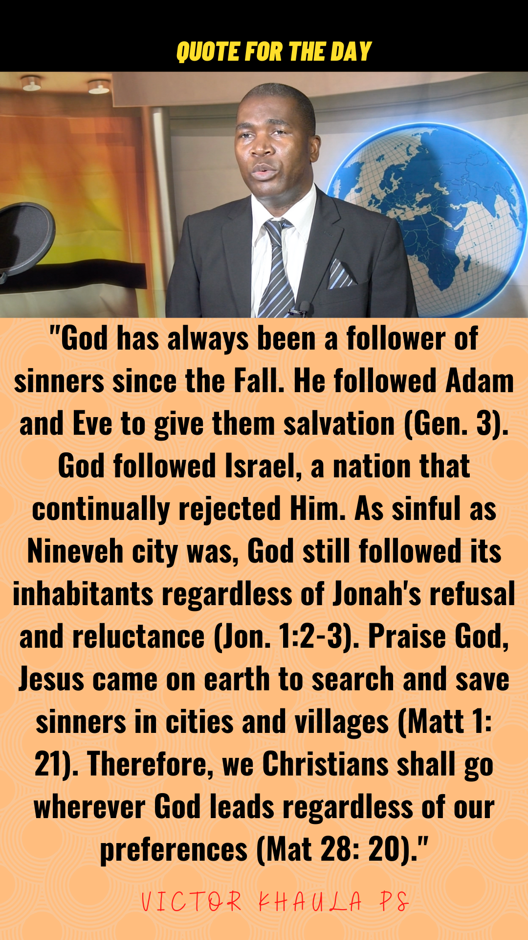 Today’s quote highlights God as a follower of sinners in cities and rural areas who expects us to also take the gospel to the cities and villages.