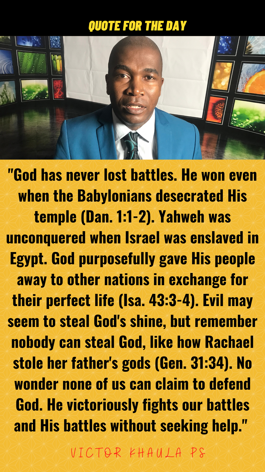 Today’s quote motivates the Christians in these darkest moments of church history when evil seems to triumph that God is still winning by purifying the church through these challenges.