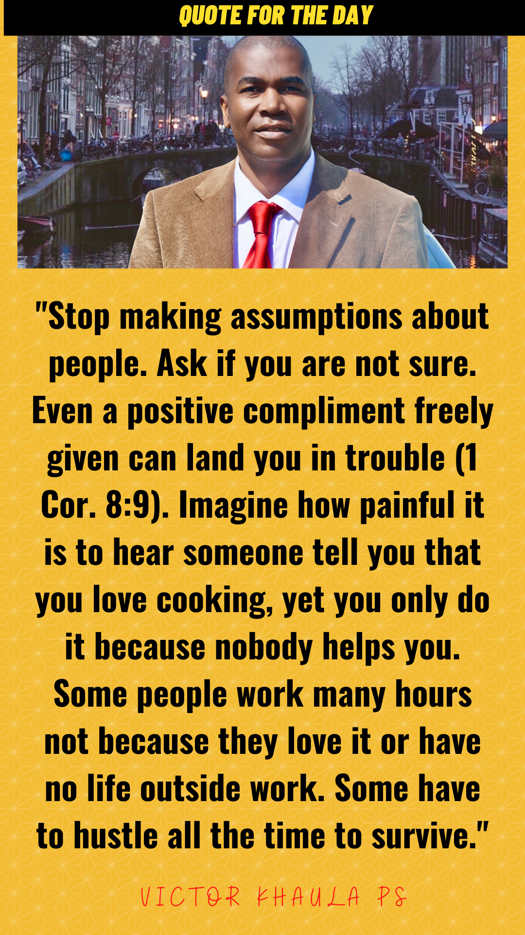 Today’s quote reminds us that we can avoid injuring many people’s feelings by avoiding making careless statements out of assumptions.