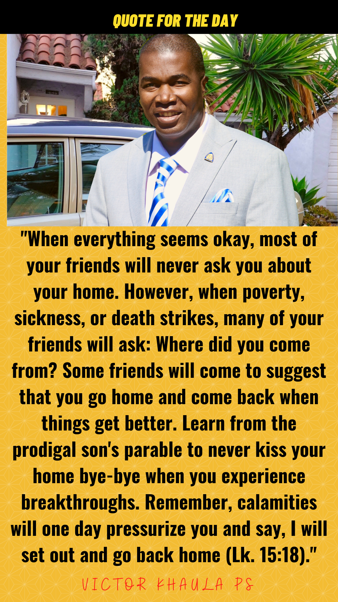 Today’s quote reminds us never to forget our origins when we succeed because problems force people to go home.