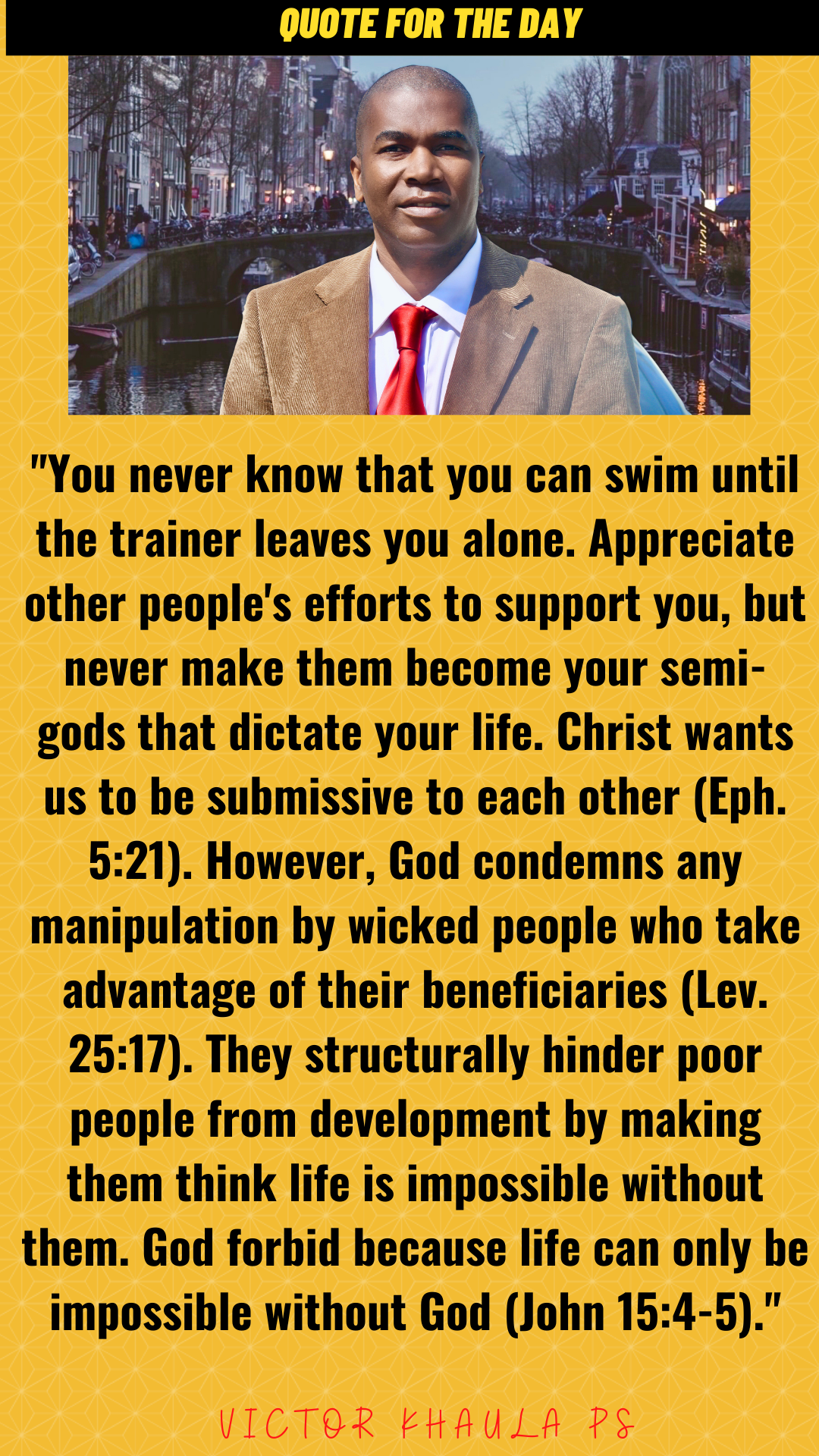 Today’s quote motivates poor people never to be scared of seeking financial freedom that rich people usually hinder to manipulate those they assist.