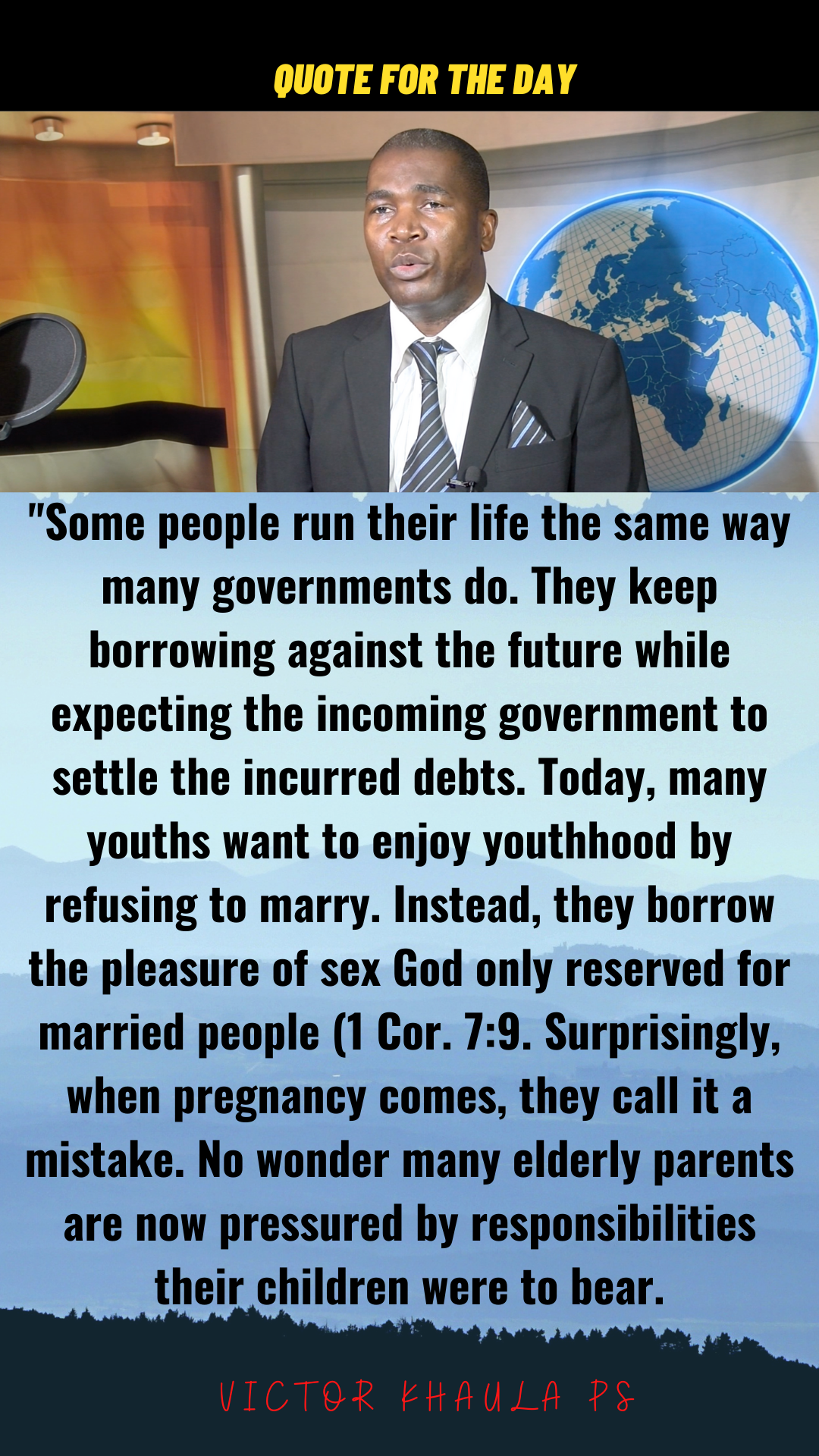Today’s quote reminds all, including youths, to enjoy the present without borrowing pleasure against the future that creates problems for others.
