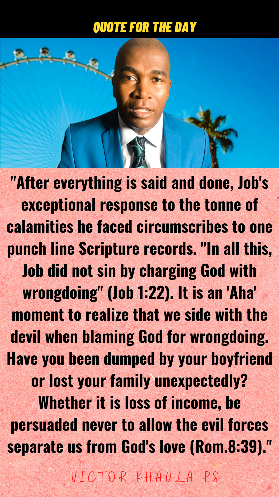 Today’s quote motivates us never to allow circumstances the devil puts us through to make us side with him in sinning by blaming it on God.