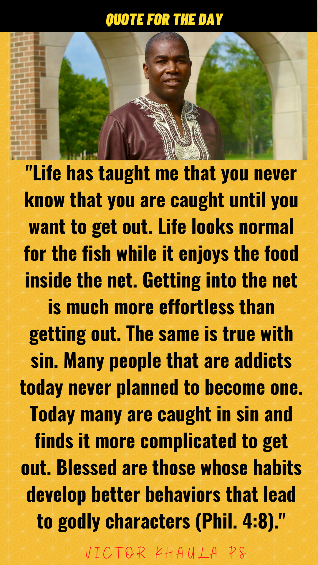 Today’s quote highlights the significance of overcoming evil habits earlier than later because it becomes more complicated to get out.