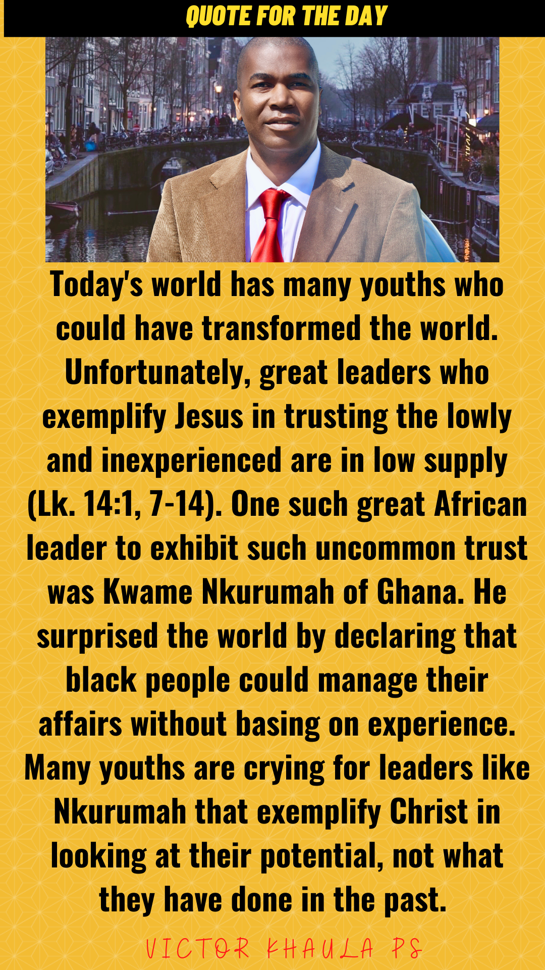 Today’s quote motivates leaders to demonstrate unqualified confidence in youths that the world may consider misfits or inexperienced.