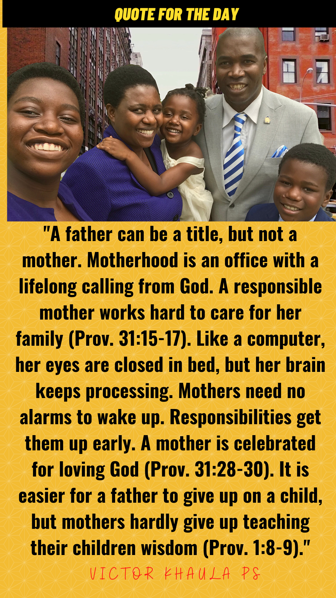 Today’s quote I join hands with many Malawians celebrating “Mother’s Day” by reflecting on how motherhood is more than a title but a lifelong call from God.