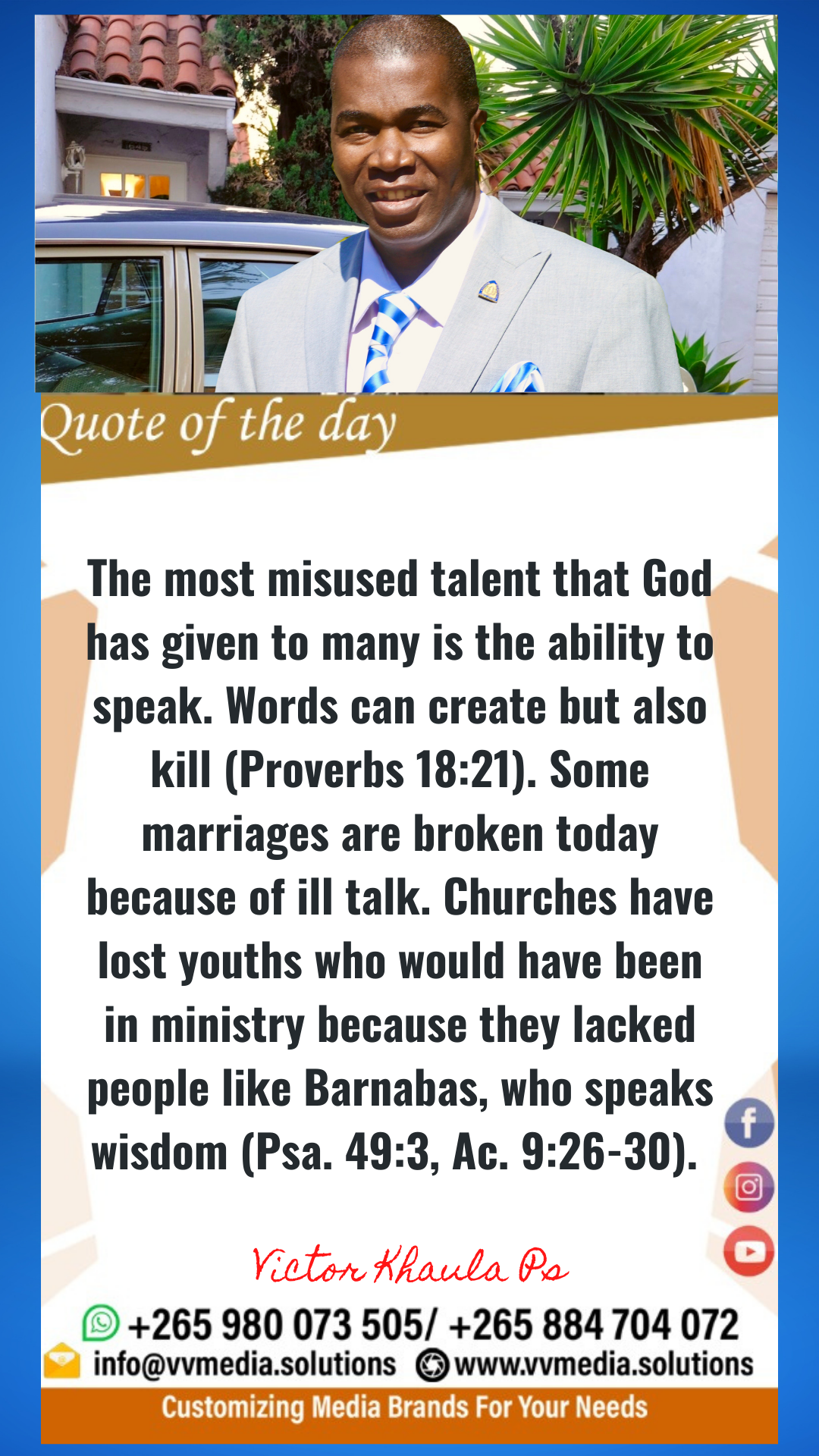 Today’s quote motivates us never to misuse our ability to speak but to be guided by the Holy Spirit, who helps us communicate with wisdom.