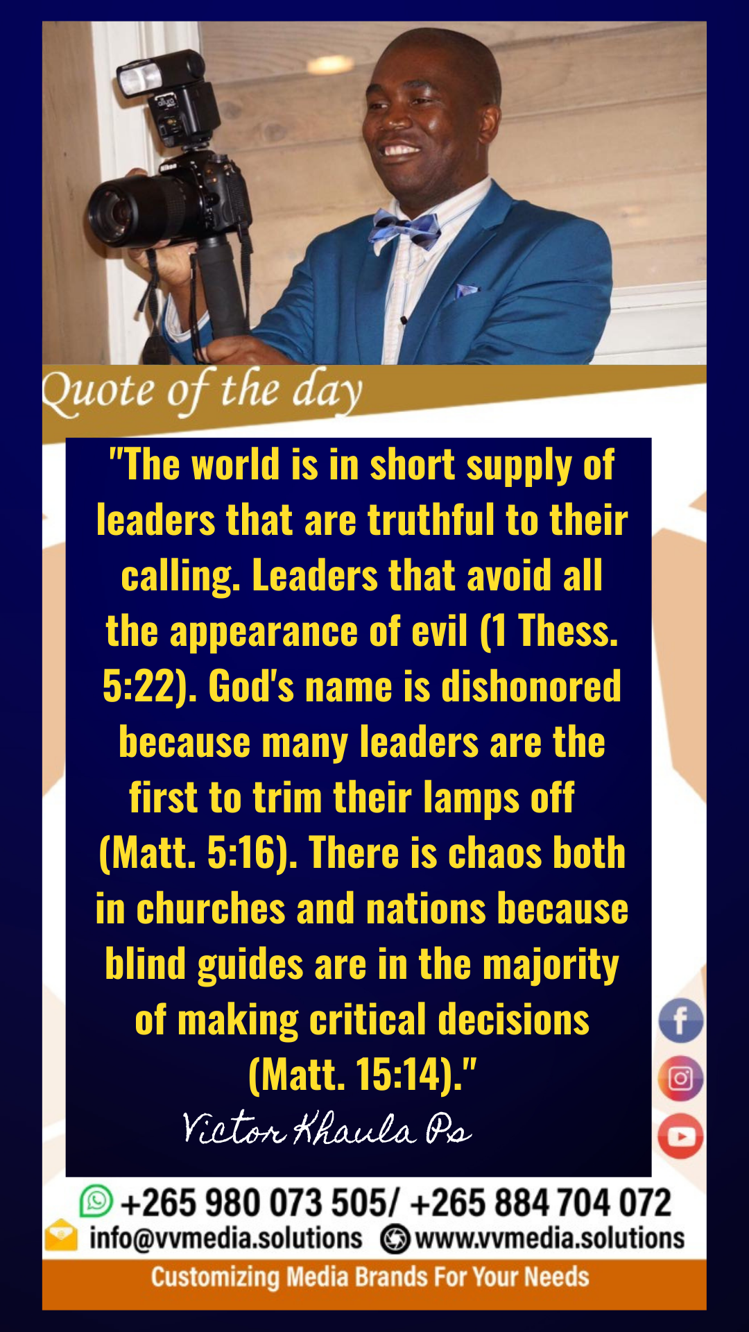 Today’s quote motivates leaders to be truthful to their calling by avoiding living double standard life that brings reproach to God’s name.