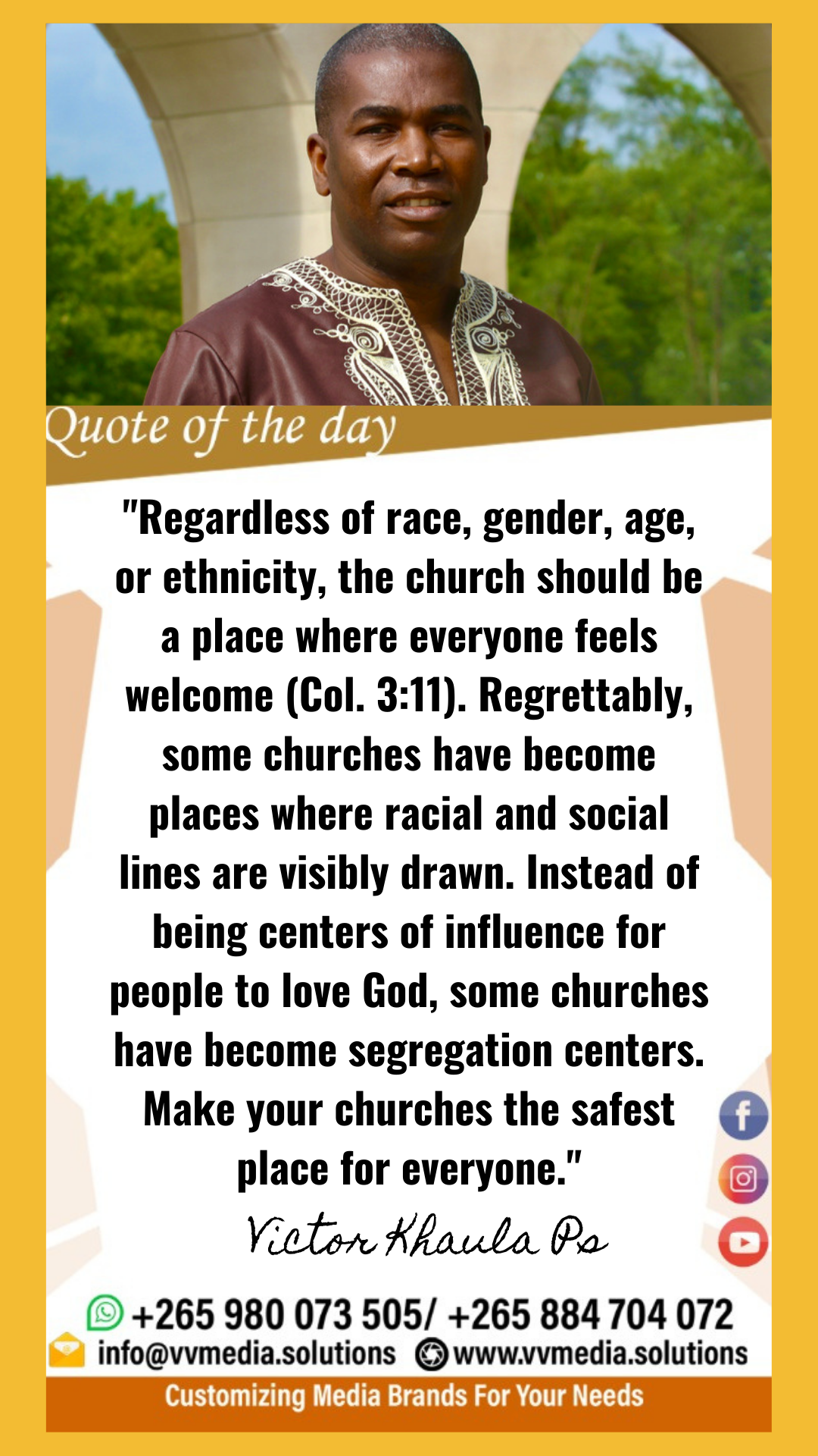 Today’s quote motivates Christians to make our churches the safest place where people are not segregated but feel freed by Christ’s love.