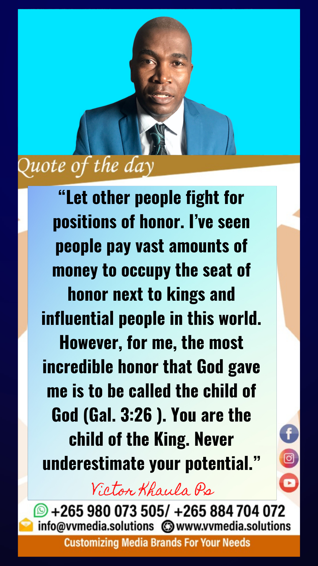 Today’s quote motivates us never to fight for earthly temporal positions of honor but be contented with the great honor of being God’s children.