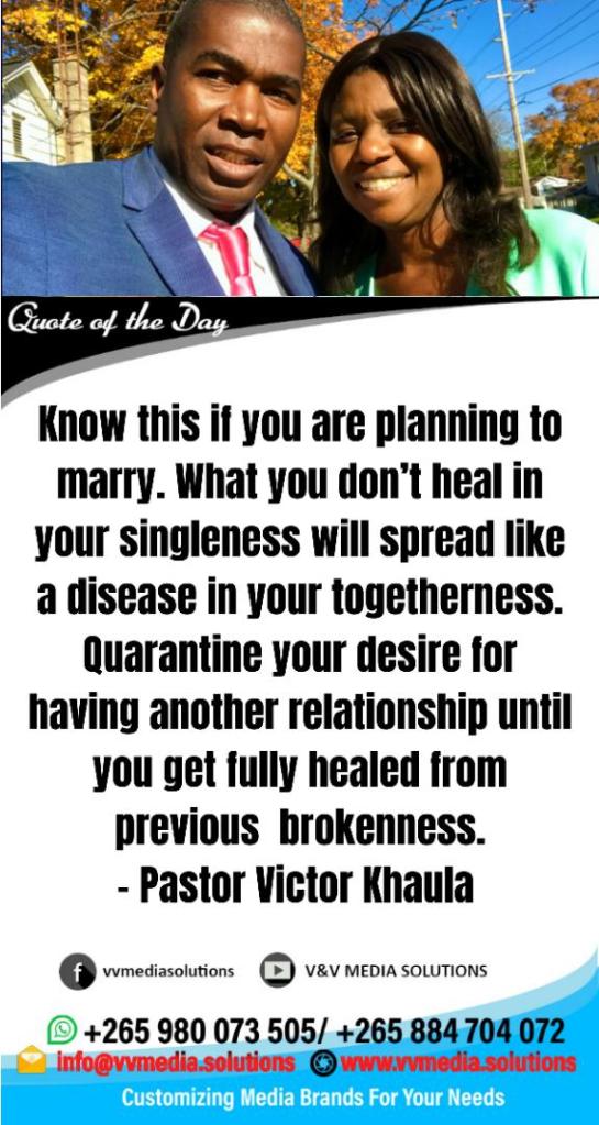 Today’s quote warns us never to compound our problems by getting into a new relationship before recovering from previous brokenness.