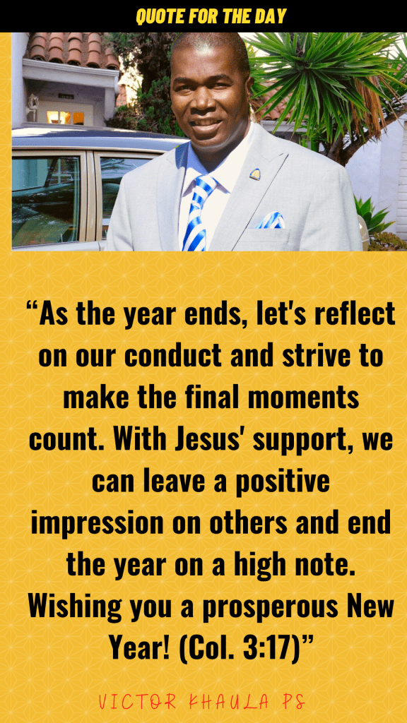 “As the year ends, let’s reflect on our conduct and strive to make the final moments count. With Jesus’ support, we can leave a positive impression on others and end the year on a high note. Wishing you a prosperous New Year! (Col. 3:17)”